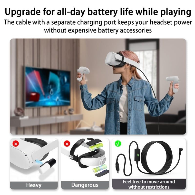 The data cable power board provides additional power supply interface, which can be connected to the data cable with the charger provided by VR itself. When connecting to the PC, additional power supply compensation can be made, which can extend the VR service time